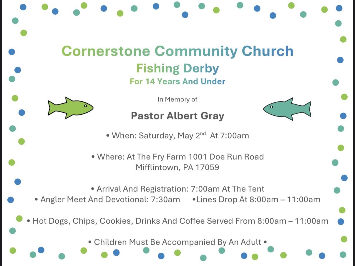 Cornerstone Community Church Fishing Derby For 14 Years And Under!