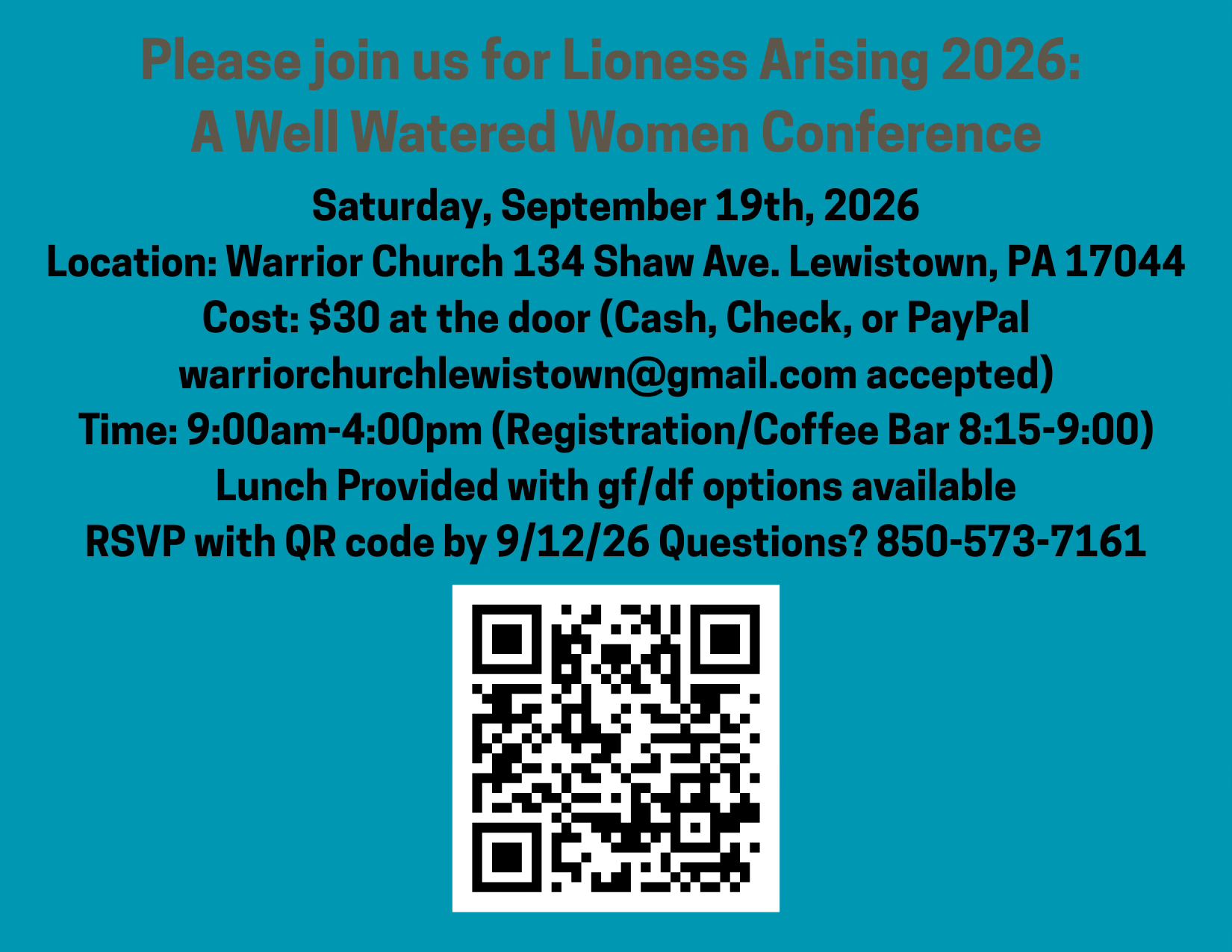 Cost: $30 at the door (Cash, Check, or PayPal warriorchurchlewistown@gmail.com accepted)