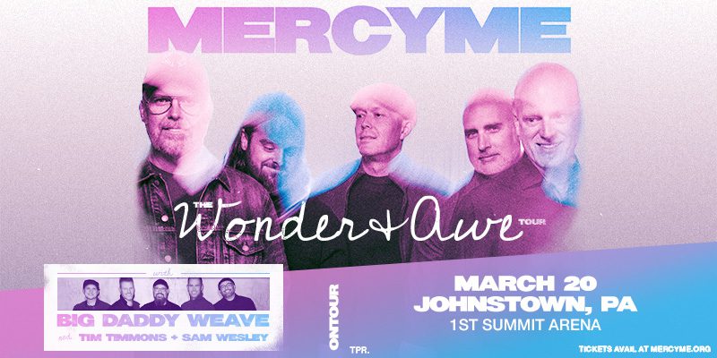 Bringing their signature blend of powerful worship and chart-topping hits to the stage once again, multi-platinum band MercyMe launched the Wonder + Awe Tour this spring, named after their latest album. Joined by beloved group Big Daddy Weave, longtime friend Tim Timmons, and newcomer Sam Wesley, this promises an unforgettable night of music, hope, and community. Fans can expect to hear MercyMe’s biggest songs alongside new favorites from Wonder + Awe, making the evening a celebration of God’s goodness together.